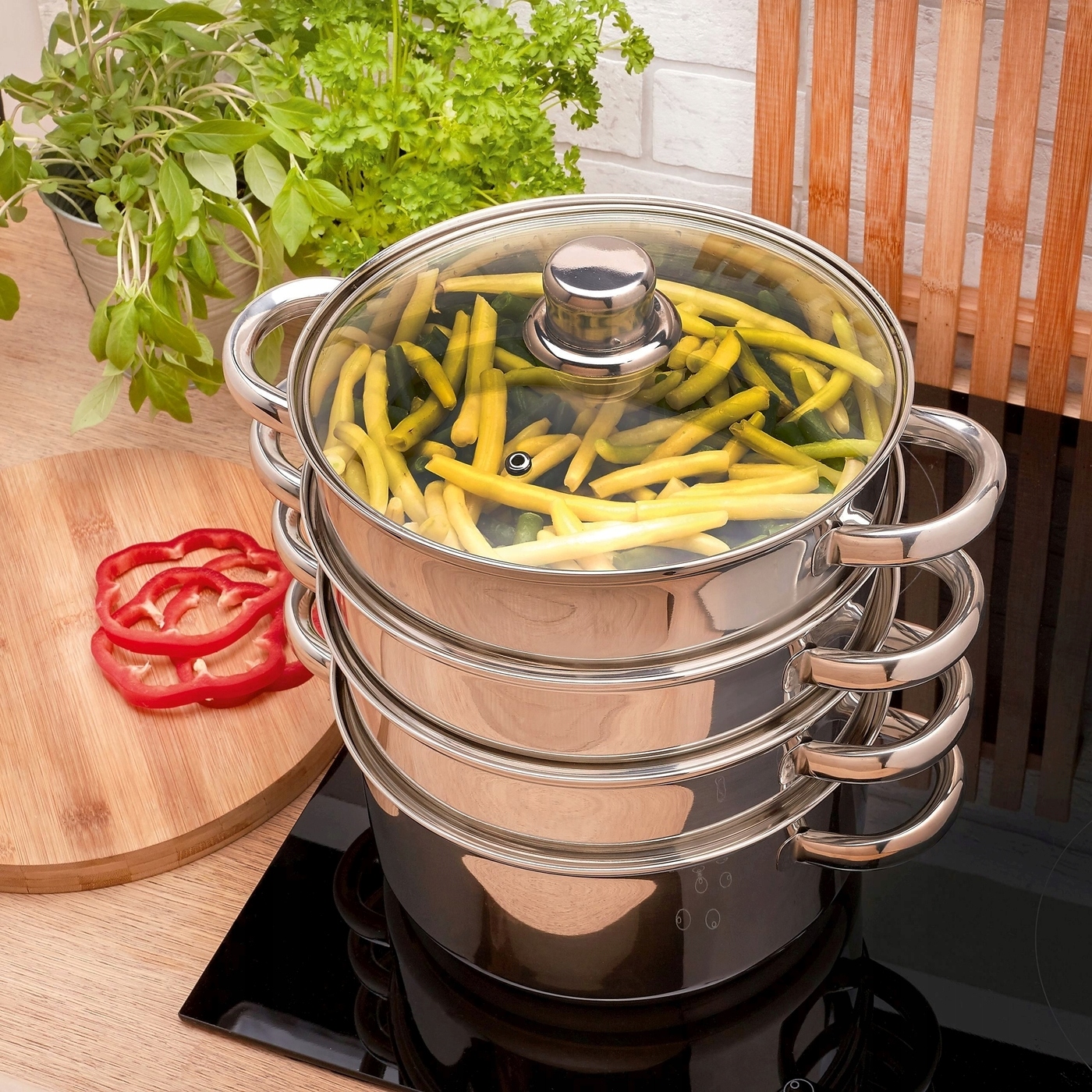 ✔️ Комплект включає: каструлю для води, 3 парові вставки, кришку