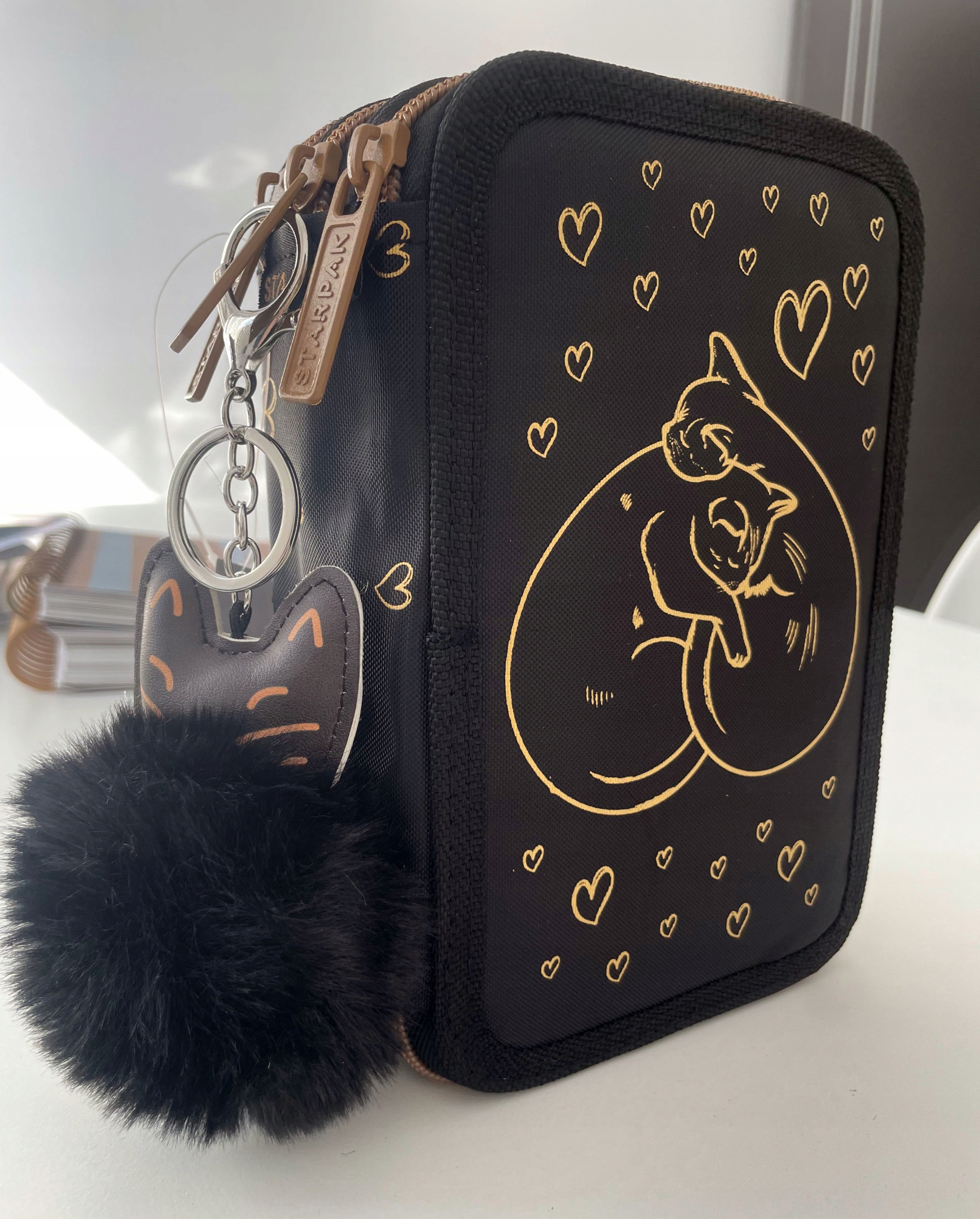 Пенал Starpak з трьома відділеннями та аксесуарами, золотисті коти, серце 553163