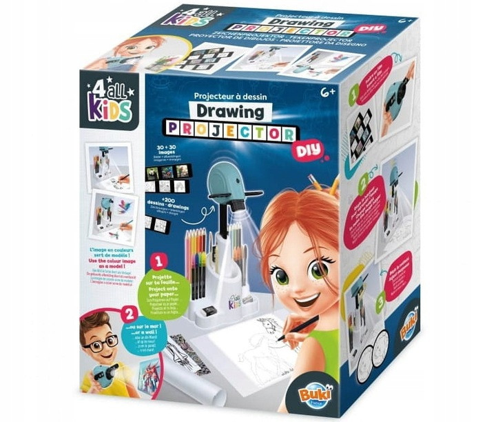 Творчий світ відкритий для маленьких художників завдяки проектору для копіювання та малювання картинок. Відобразіть на аркуші паперу чорно-біле зображення, обведіть контури, а потім перетворіть його на кольорове зображення, яке буде служити зразком для розфарбовування. У набір входить 30 малюнків для відтворення (кольорових і чорно-білих), 200 маленьких візерунків і різні види паперу, на якому можна створювати справжні витвори мистецтва. Прикрашайте блокноти, закладки малюнками, створюйте плакати і багато-багато іншого. Ви можете регулювати висоту проектора і, як наслідок, розмір копійованих зображень. Головка проектора повертається, що дозволяє проектувати зображення на стіну. Ви також можете знімати його, тримати в руках і проектувати зображення будь-де. Можливість регулювати фокус за допомогою чорної ручки навколо дисплея на передній панелі проектора. У набір входять усі необхідні аксесуари для розфарбовування: кольорові олівці, фломастери, олівець, точилка та ін. Проектор розташований на підставці, яка вміщує їх усі, що дозволяє легко підтримувати порядок. Гра з проектором розвиває дитячу творчість і уяву. Обведення контурів тренує терпіння та концентрацію. Широкий спектр використання іграшки робить її ідеальним подарунком на різні обставини. Потрібні 3 батарейки LR03, не входять у комплект. Ми рекомендуємо використовувати лужні батареї рекомендованих марок. Вік: 6+ Вміст: - проектор з підставкою для приладдя, - 30 малюнків і 200 візерунків для обведення, - 12 акварельних олівців, - 8 фломастерів, - 1 чорний фломастер, - 1 олівець, - 1 ластик, - 1 точилка, - 1 пензлик, - 10 аркушів А5, - 10 аркушів А4, - 5 закладок, - плакат 5 м. Розміри: 26 х 15 х 30,5 см