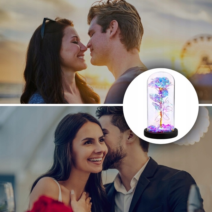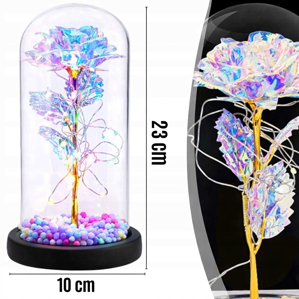 ВІЧНА ТРОЯНДА У СКЛІ 2 СВІТЛОДІОДНІ ТРОЯНДИ ПОДАРУНКОВА КОРОБКА ДЛЯ РІЗДВЯНОГО ПОДАРУНКУ