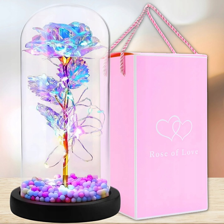 Вічна троянда в склі з Led підсвіткою різнобарвна